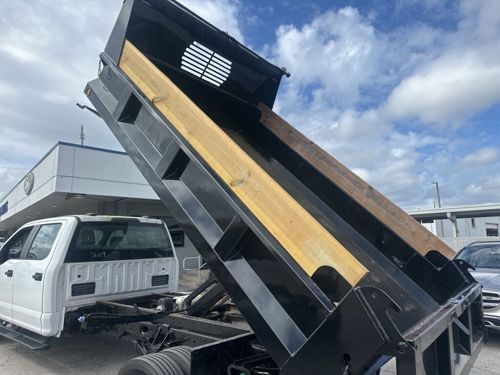The spacious crew cab provides ample room for your crew, while the Rugby dump body offers unmatched versatility. Loaded with premium features like the Power Equipment Group, this Ford F-450 is designed to make your life easier. Enjoy the convenience of power locks, windows, and heated, power-adjustable mirrors, as well as advanced safety technologies like ABS brakes and dual airbags.