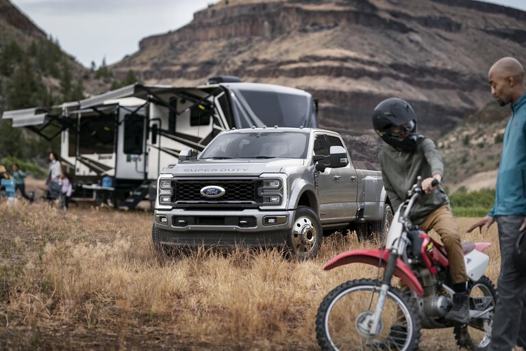 Powerful Super Duty® engines churn out the kind of power used to build highways. Harvest farms. Move land movers. And tow a very big camper.